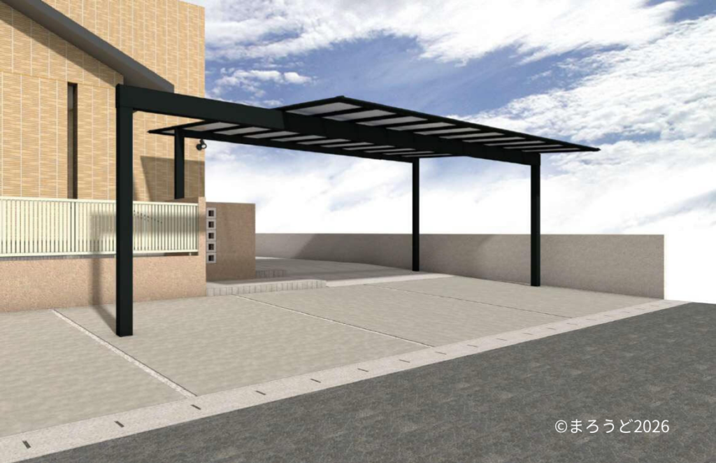 カーポート「三協アルミ スカイリード 両側支持」を前側のみ梁延長で設置しました。
