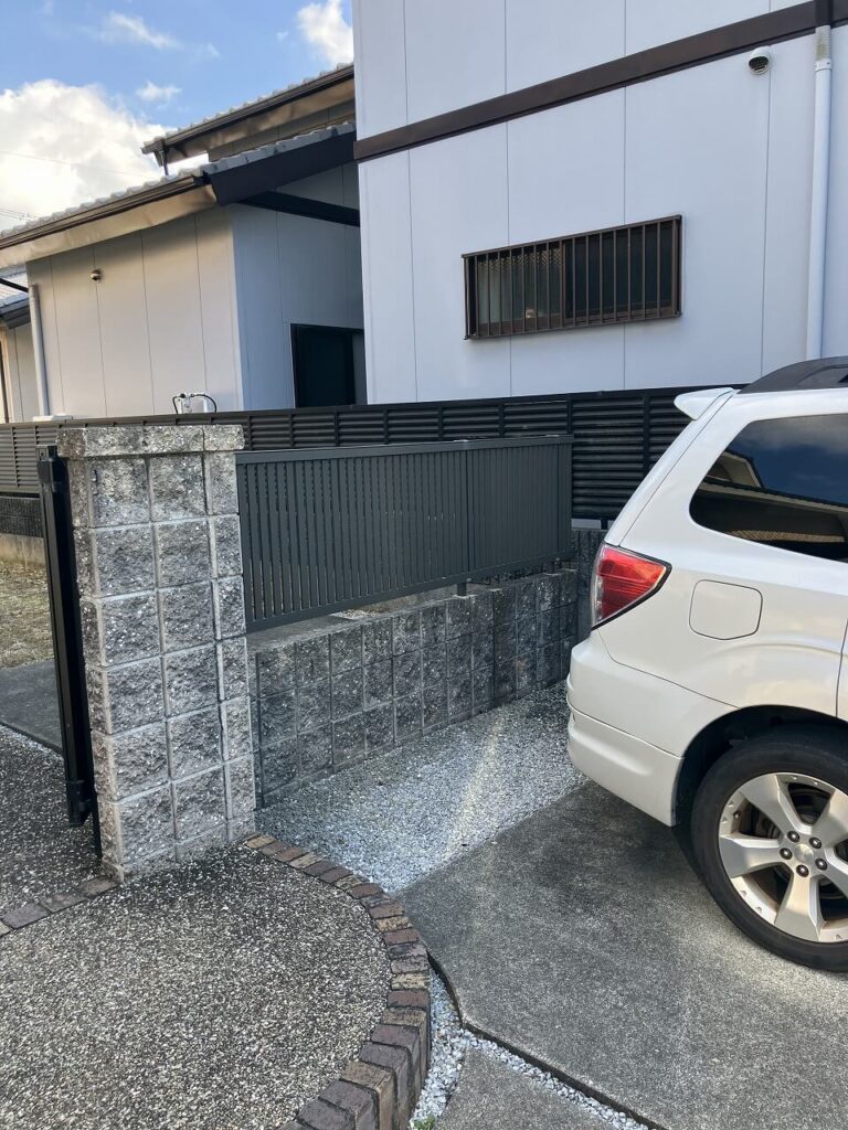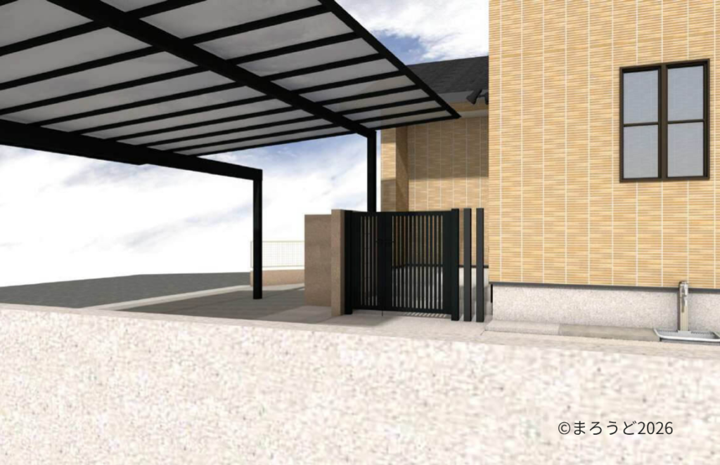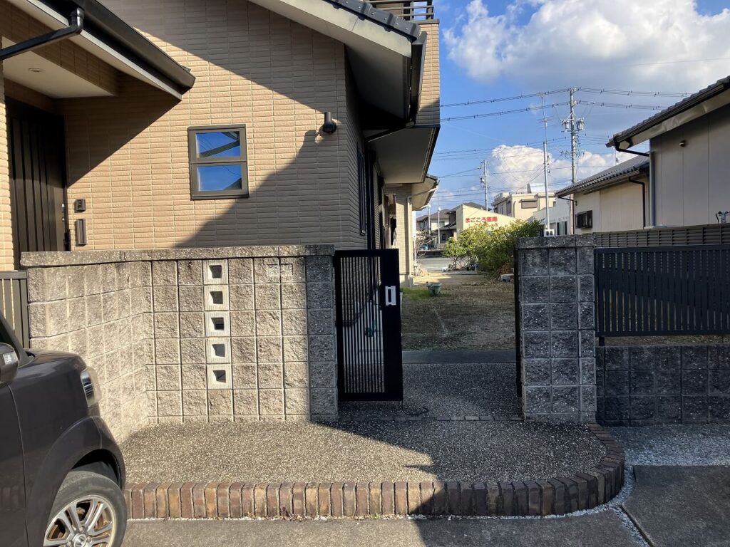 お施主様は《駐車場を広げるのでカーポートを付けたい。今の門扉は撤去するので新しい門扉をつけてほしい。》ということでした。