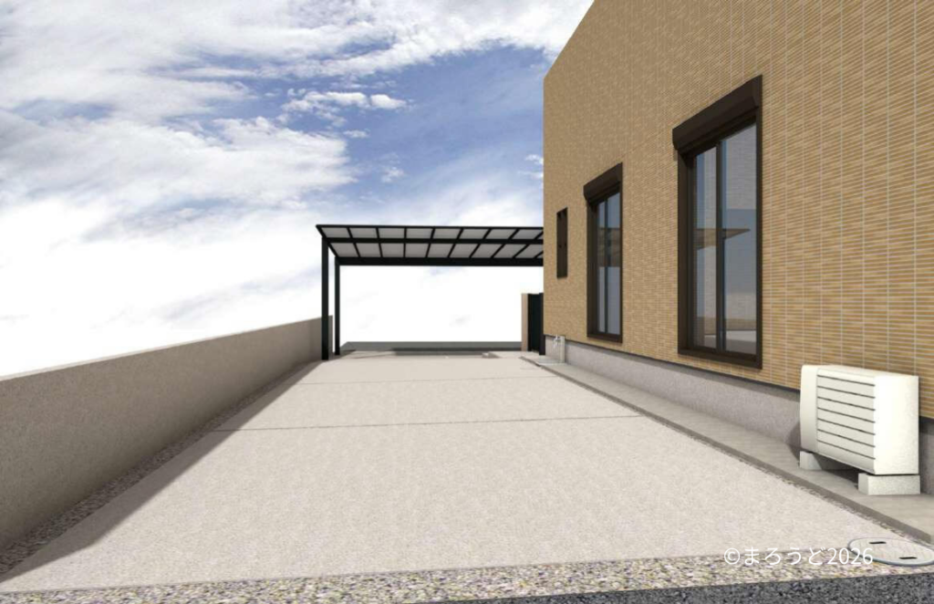 カーポートの屋根を玄関ポーチまで広げることで、雨を気にせず移動できるようになりました。