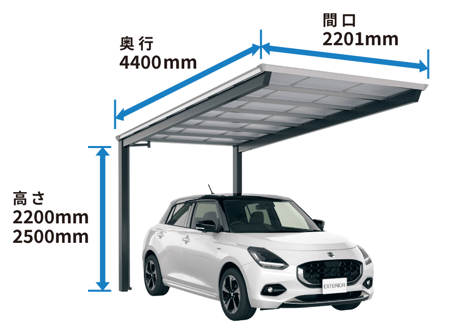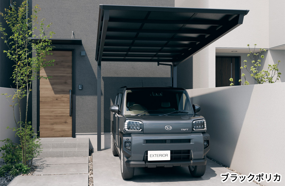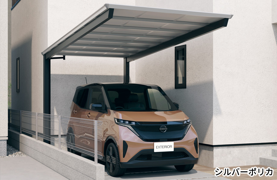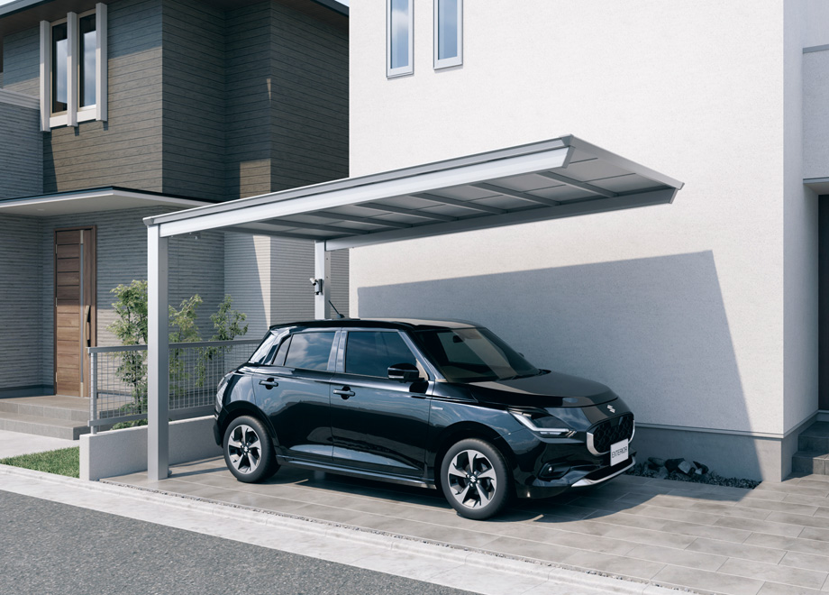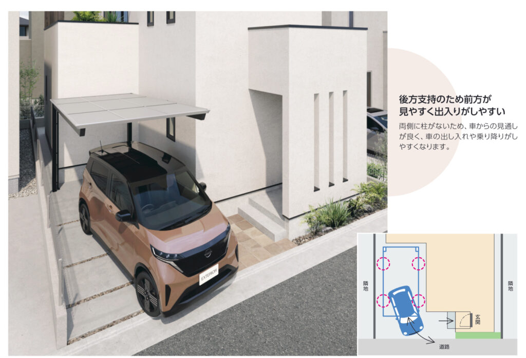 コンパクト設計の後方支持カーポート