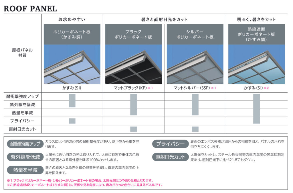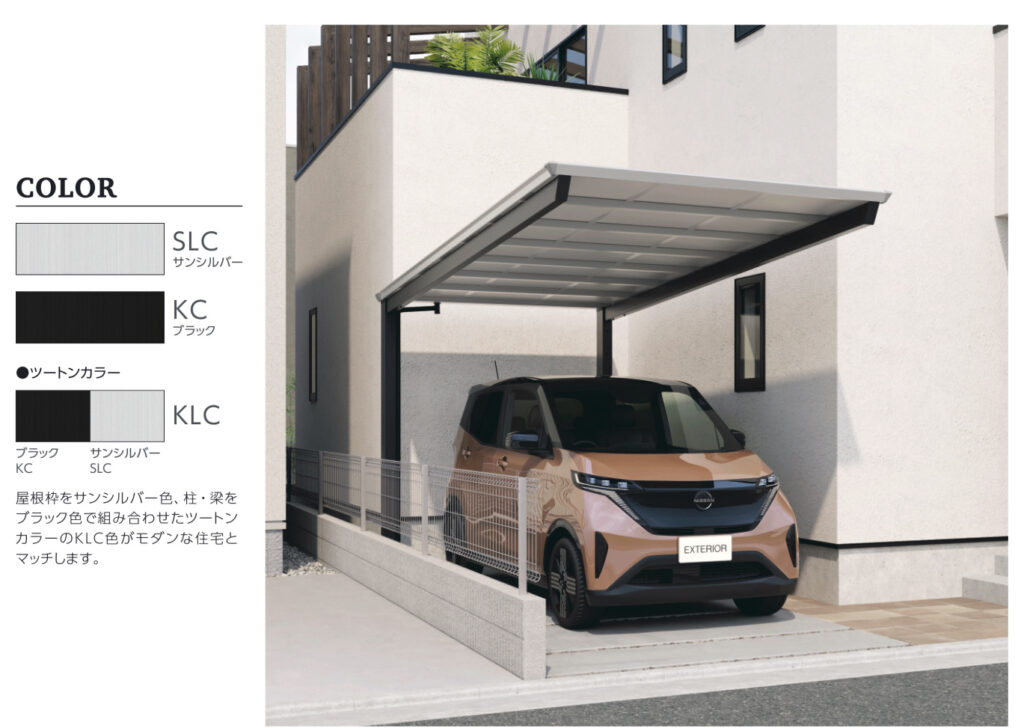 ◆スタイリッシュなツートンカラーやシルバーポリカーボネート屋根も設定