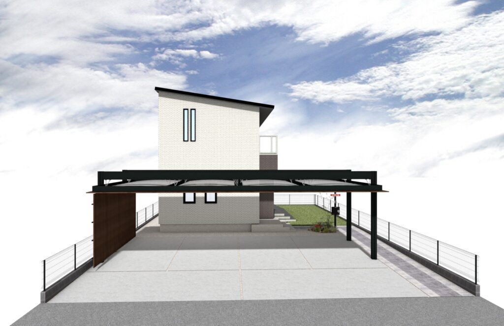 敷地対応力の高いU.スタイルアゼストは並列4台でも中間柱なく屋根を設置できるので
