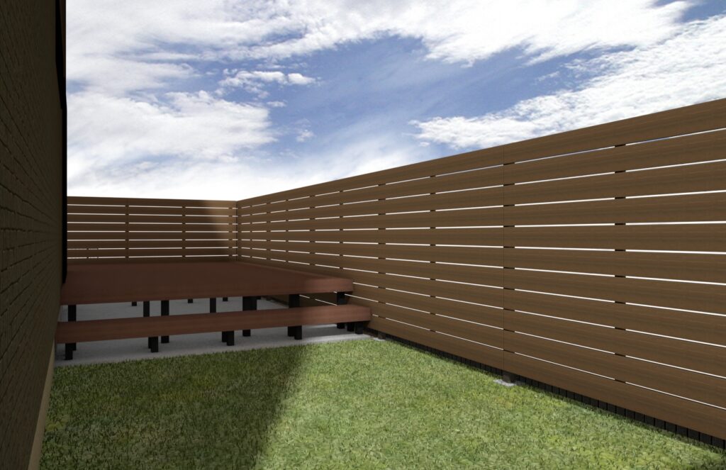 樹脂フェンスのプラドrich+で囲みプライベート空間を確保しました。