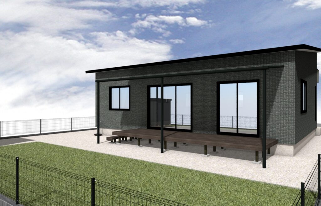 デッキ上にはブラックポリカーボネートのテラス屋根を設け