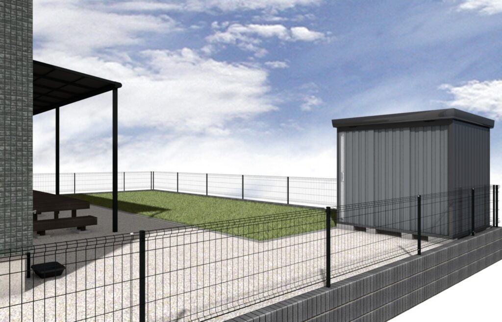 庭スペースは遊びやすい人工芝のスペースとBBQや花火などがしやすい