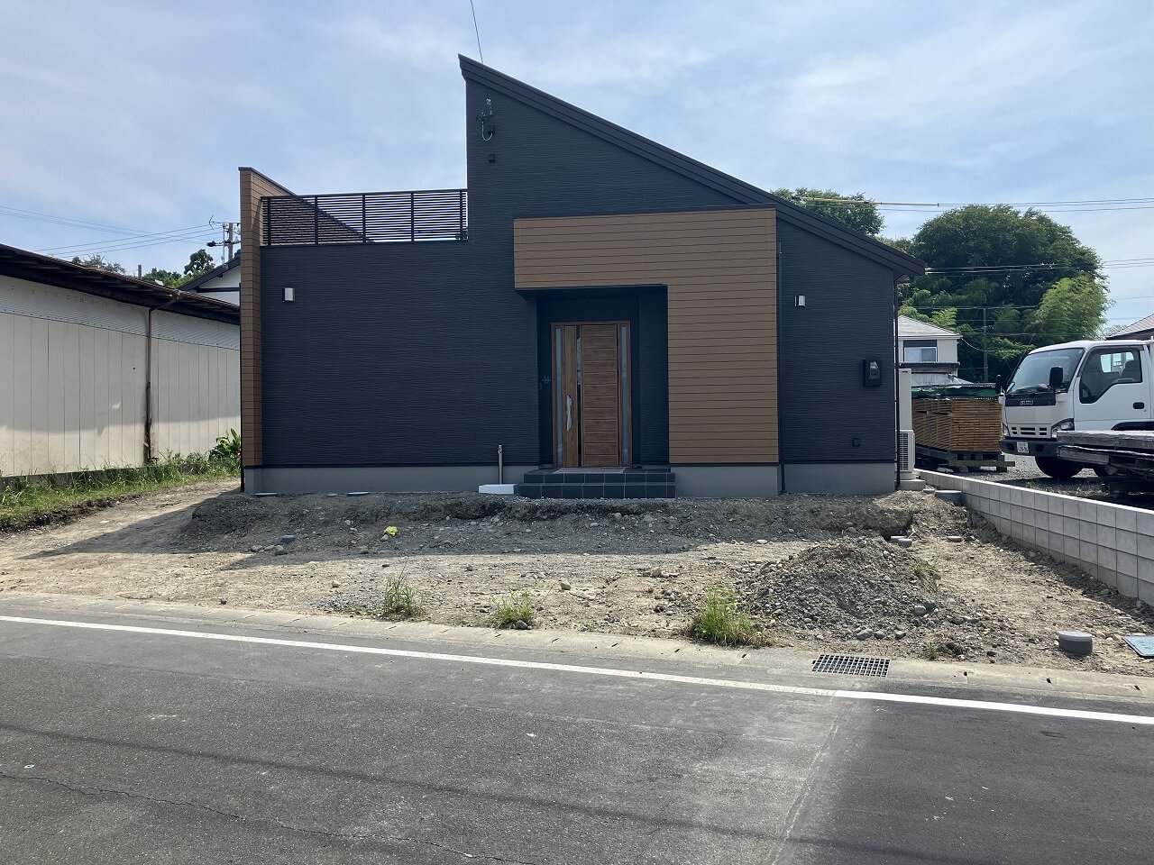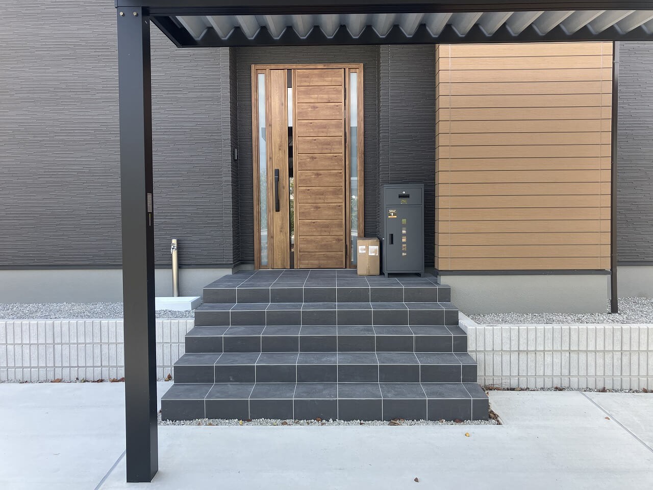 2025.10.06 折板カーポートが目を惹く新築外構です。