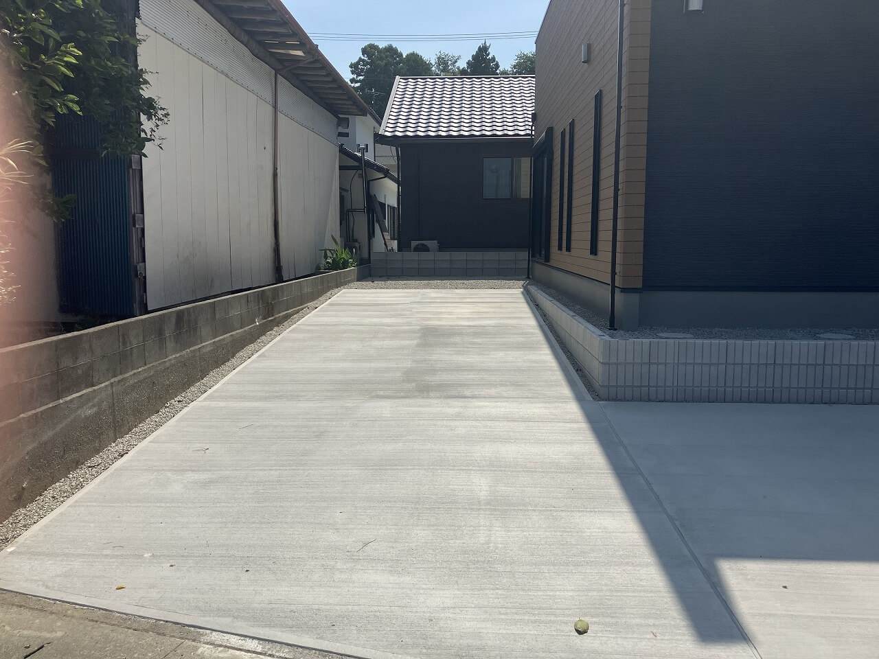 駐車スペースはコンクリートを施工し、それ以外の部分は防草シートと砂利でしっかりと雑草対策も施しました。