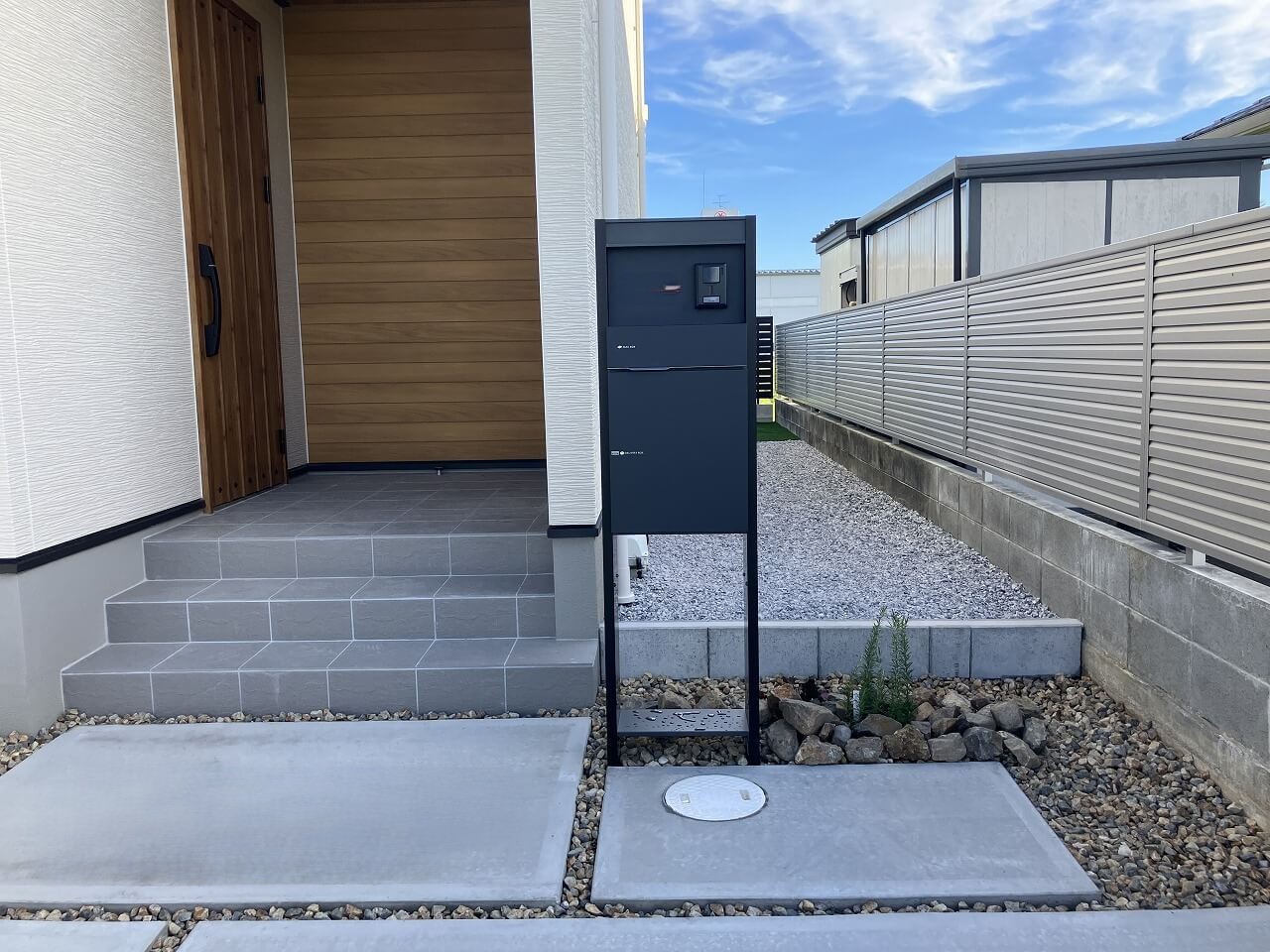 見た目もシンプルで、外構の雰囲気に自然になじみます。