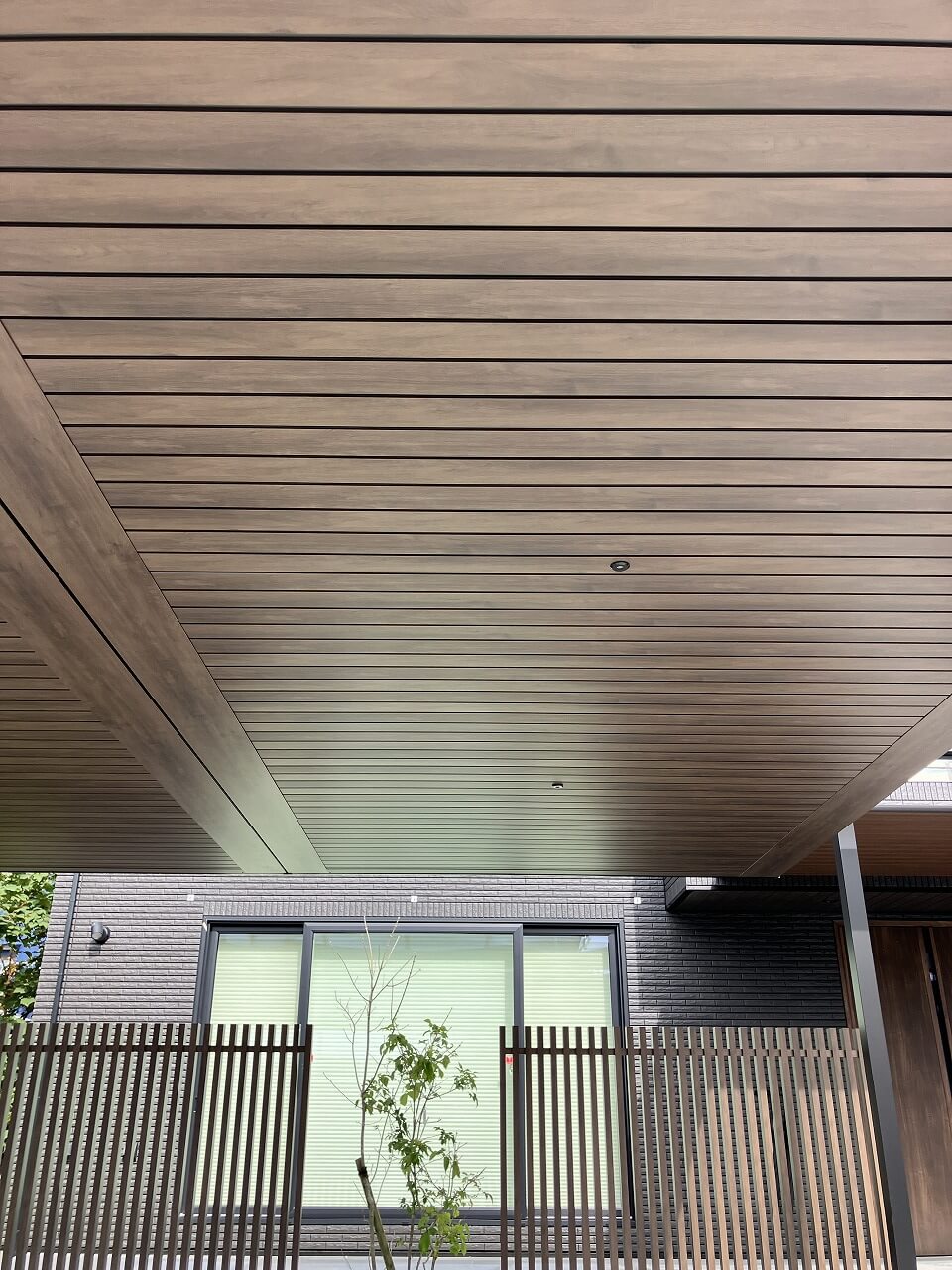 カーポートの屋根裏には木調仕上げを採用し、機能性だけでなく、空間の質感にもこだわりました。