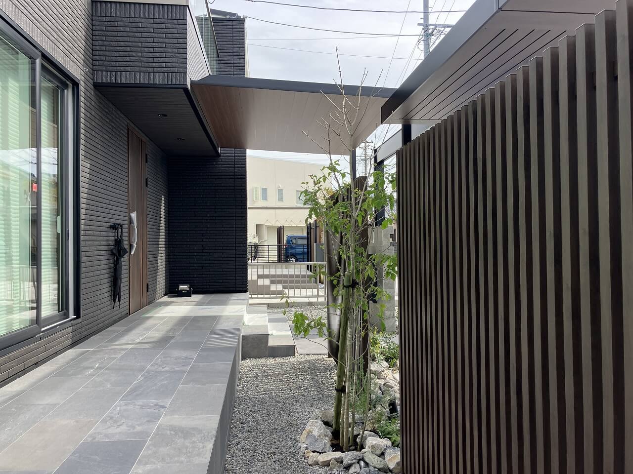 機能性はもちろん、「住まいの顔」としての存在感を大切にした、スタイリッシュで上質な外構空間となりました。