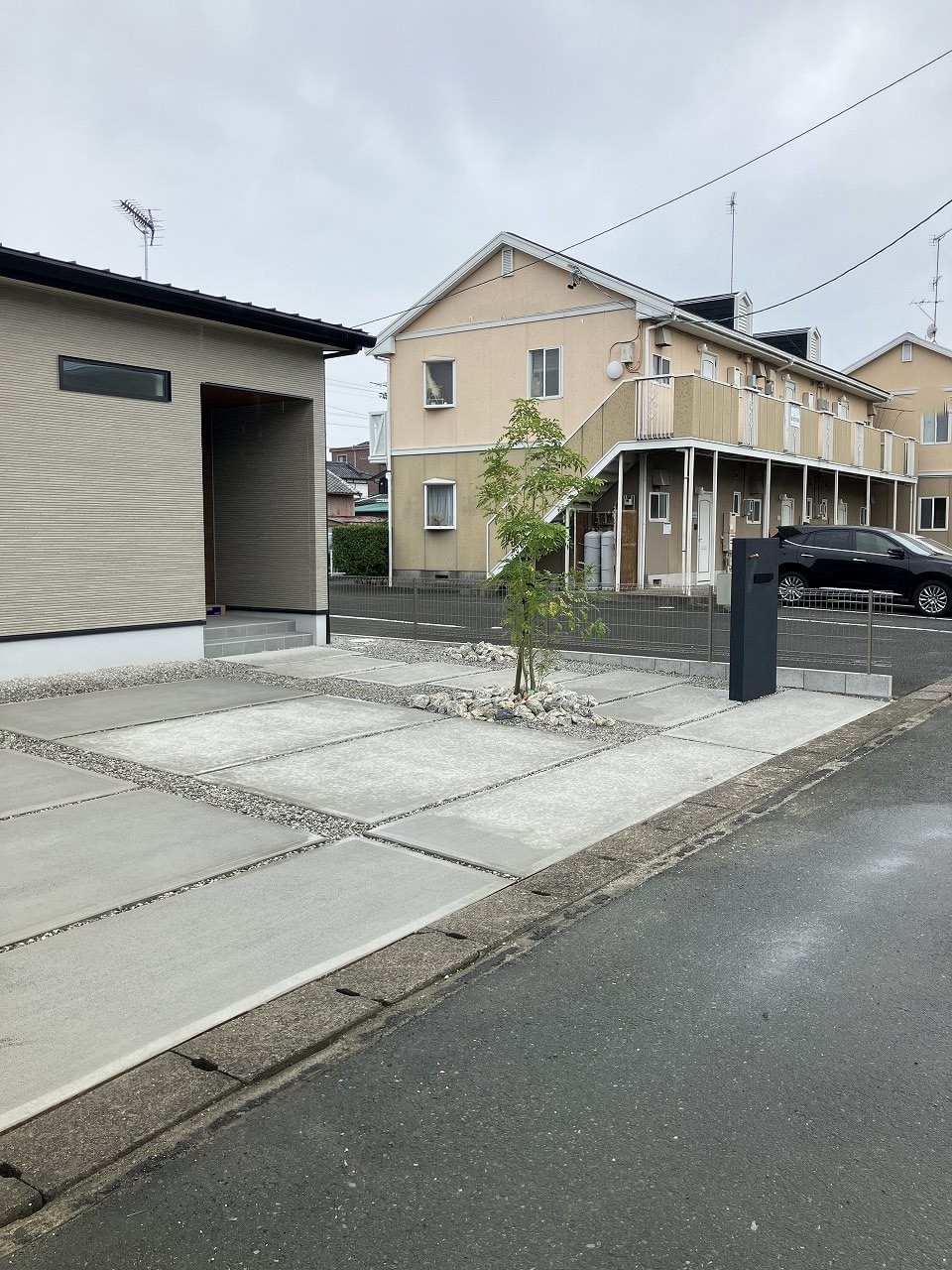 2025.12.15 開放的な駐車スペースと程良いプライバシーが確保された新築外構です。