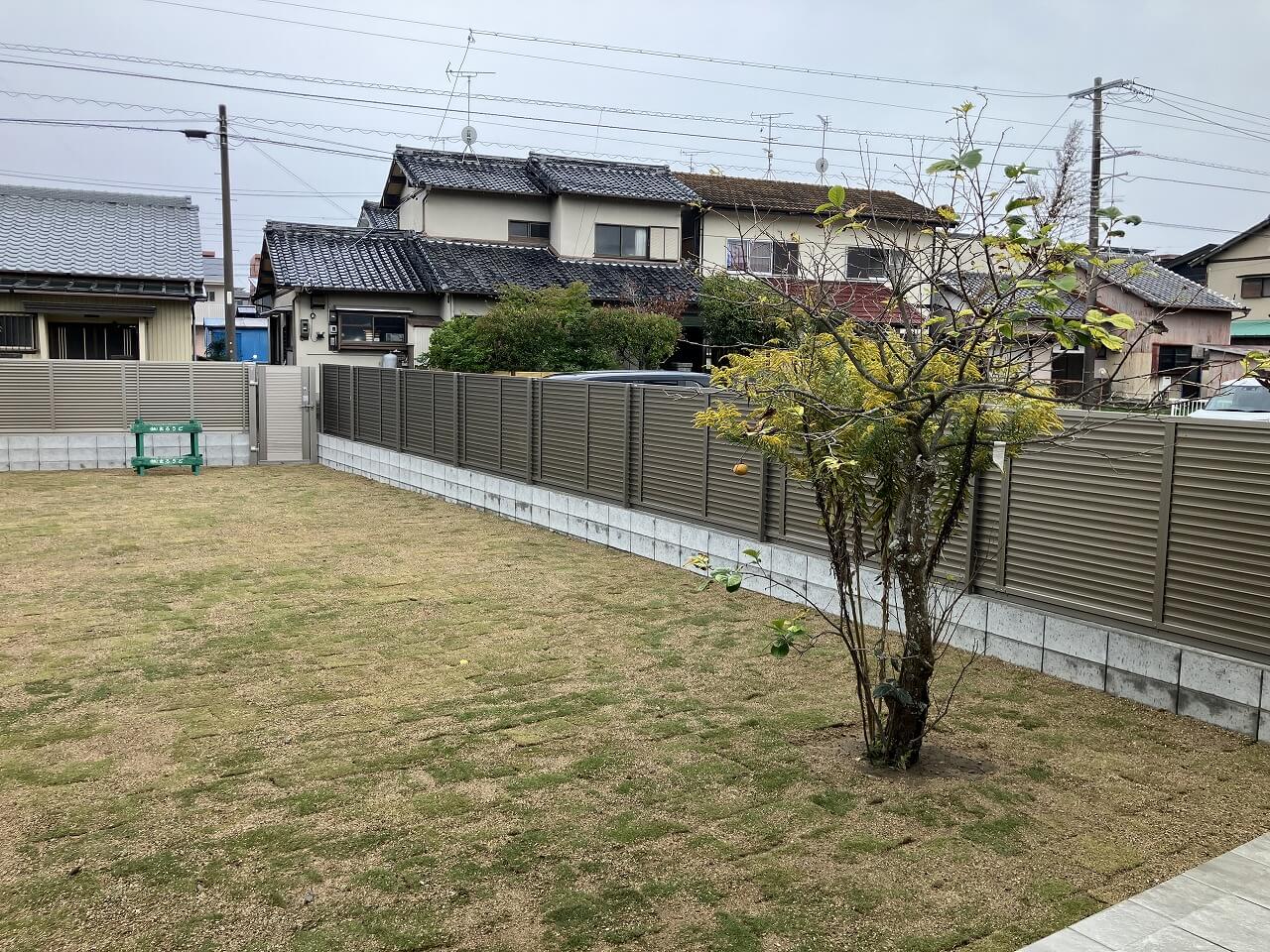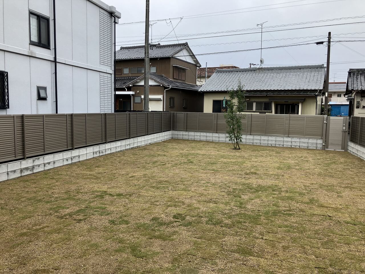 広々とした天然芝のお庭が心地よい、そんな新築外構が完成しました。