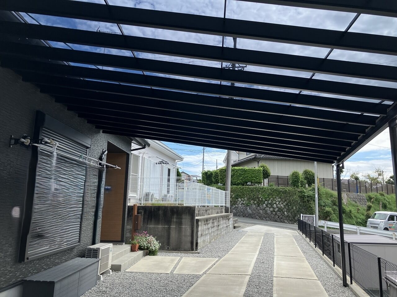 お車の出入りも雨を気にすることなくできるようになり、お天気を気にすることなく洗濯物を干すことも可能になりました。