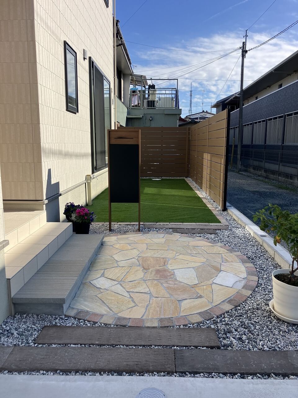 天然石を効果的に用いた、明るい印象の新築外構